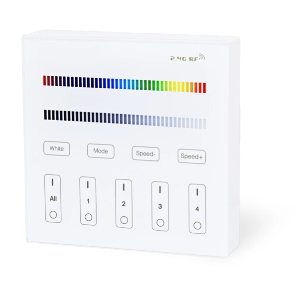 4-Zonen RGBW LED Wand-Fernbedienung für die Farbsteuerung von bis zu 4 Kanälen für die LED RGBW Leuchten. Kompatibel mit LED Controllern und LED Leuchten Miboxer